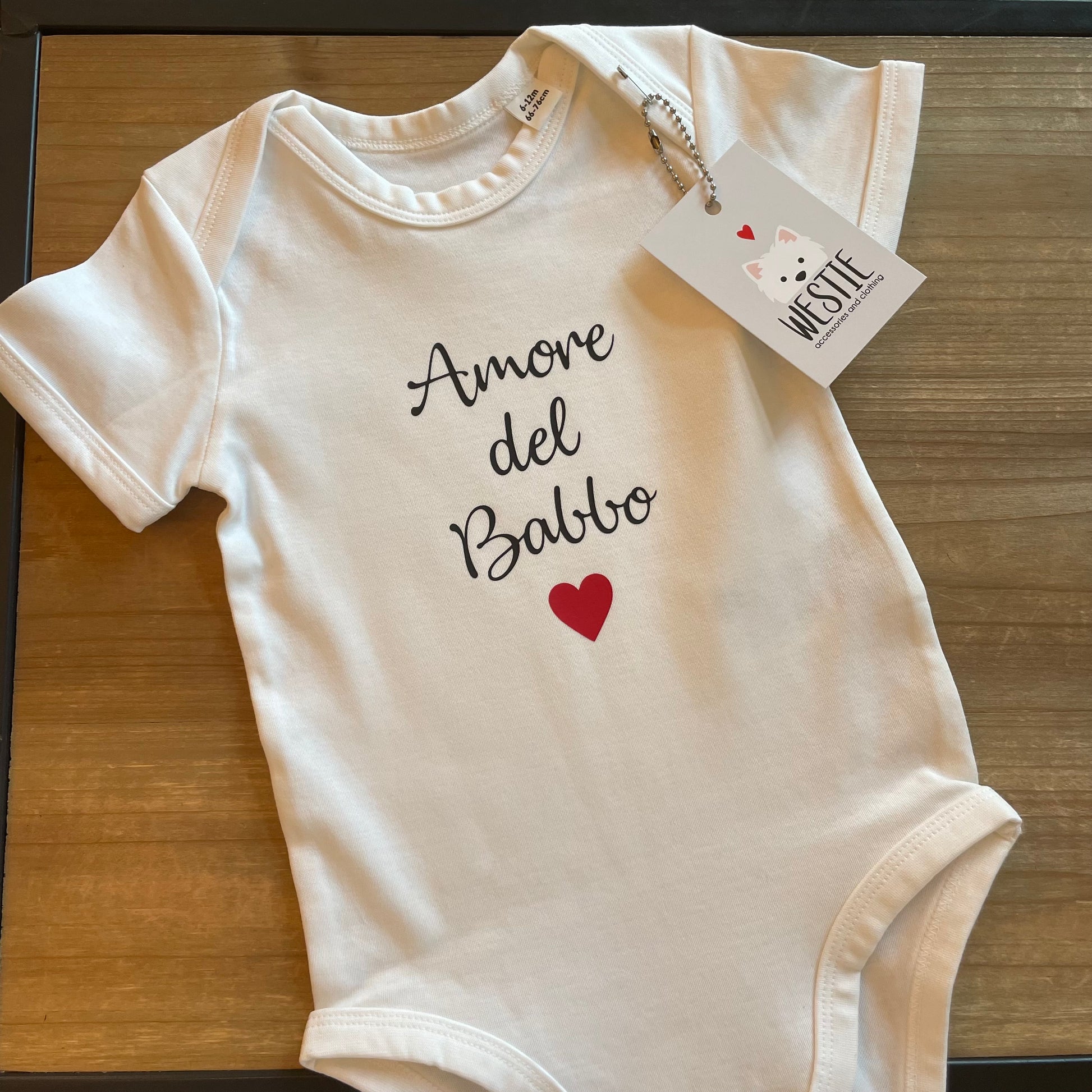Manica corta, scollo all'americana e bottoncini a pressione nickel-free sul cavallo. La personalizzazione è realizzata in termo-vinile.