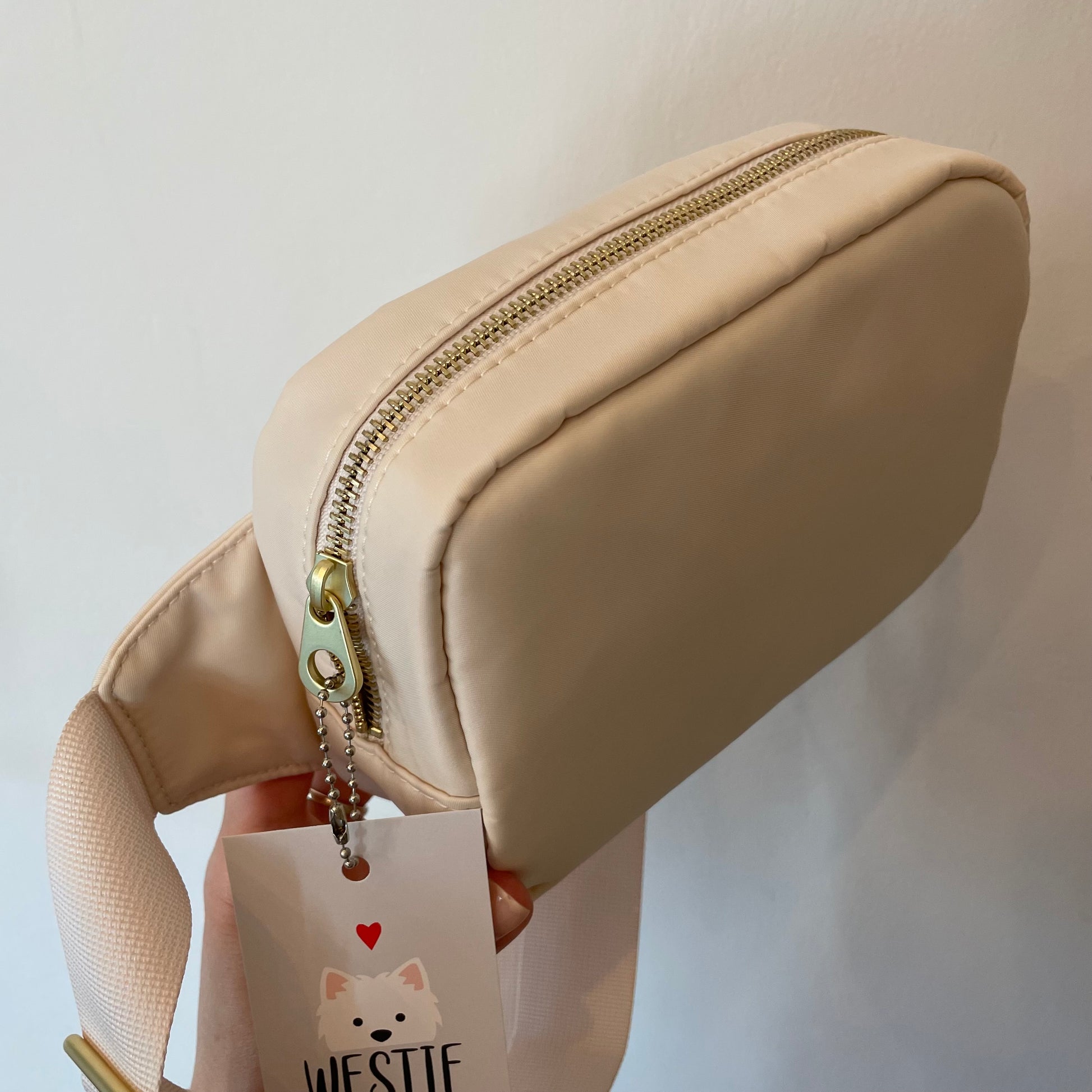 Dimensioni: (14x20x6,5) cm. Questo modello presenta la zip dorata in tutte le varianti e una tracolla regolabile. La personalizzazione è realizzata in termo-vinile.