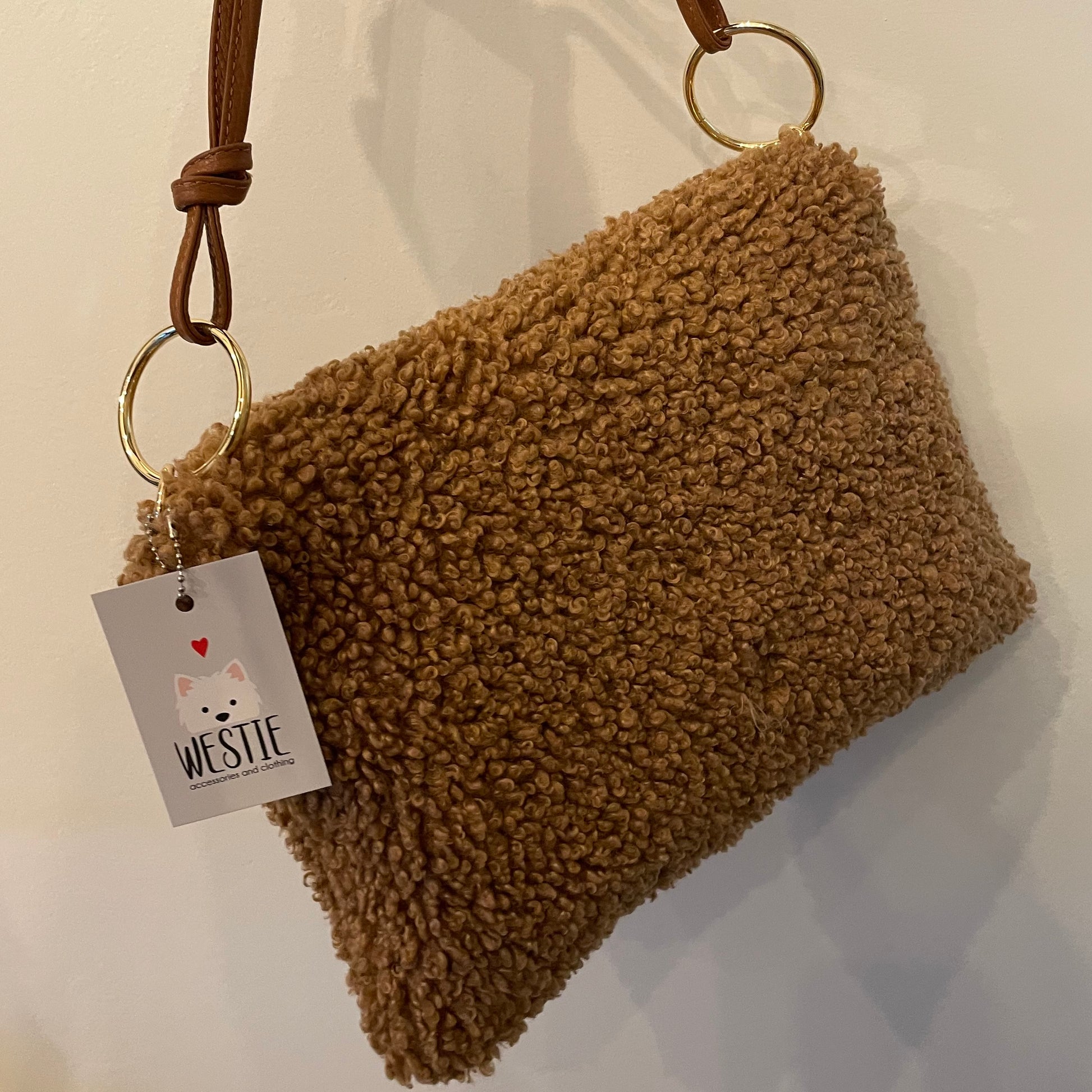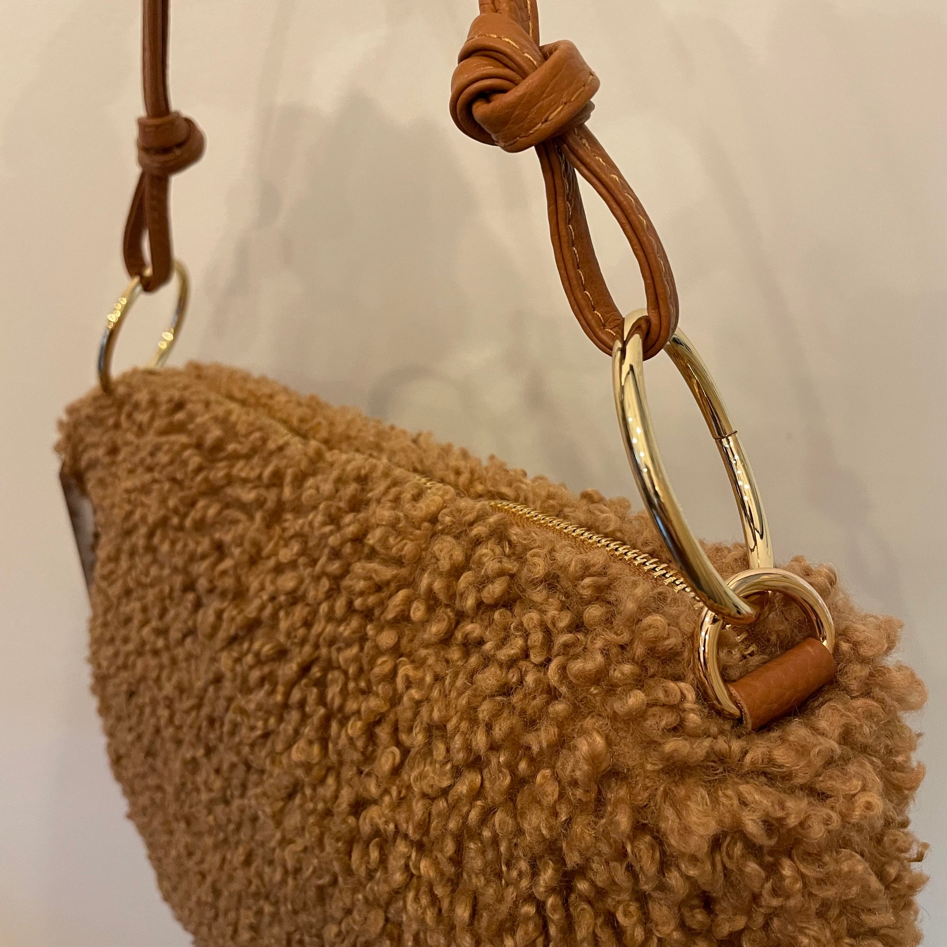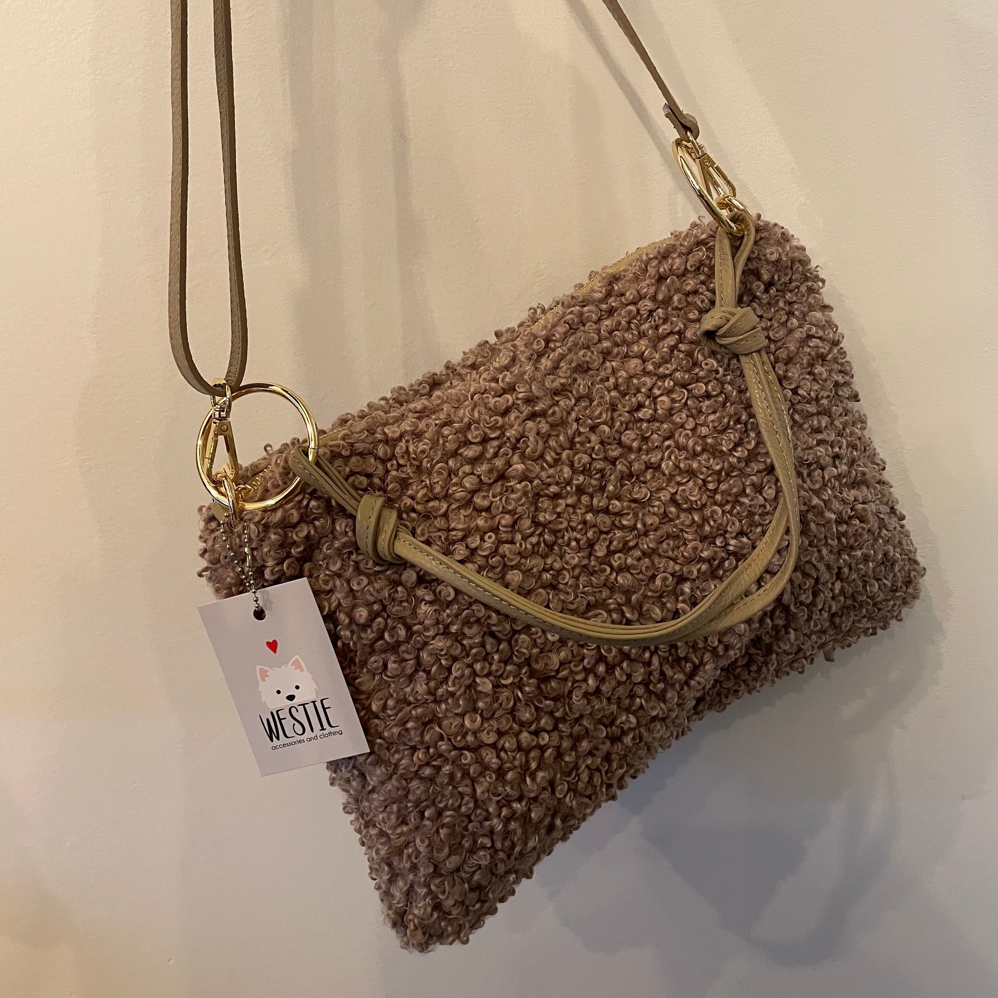 Borsa in teddy made in Italy con manico e tracolla staccabile in vera pelle.