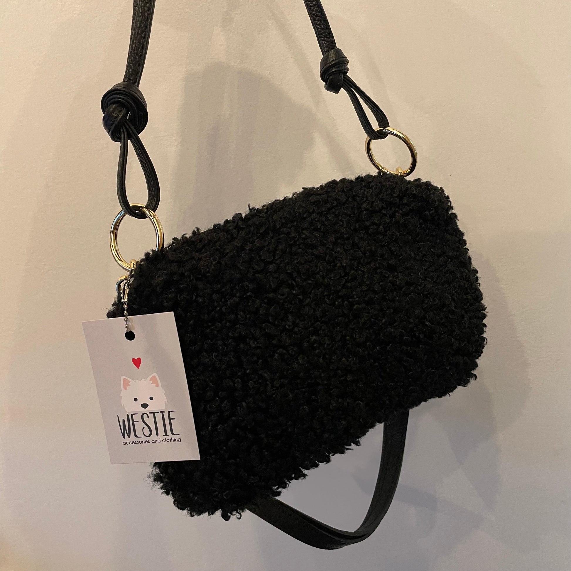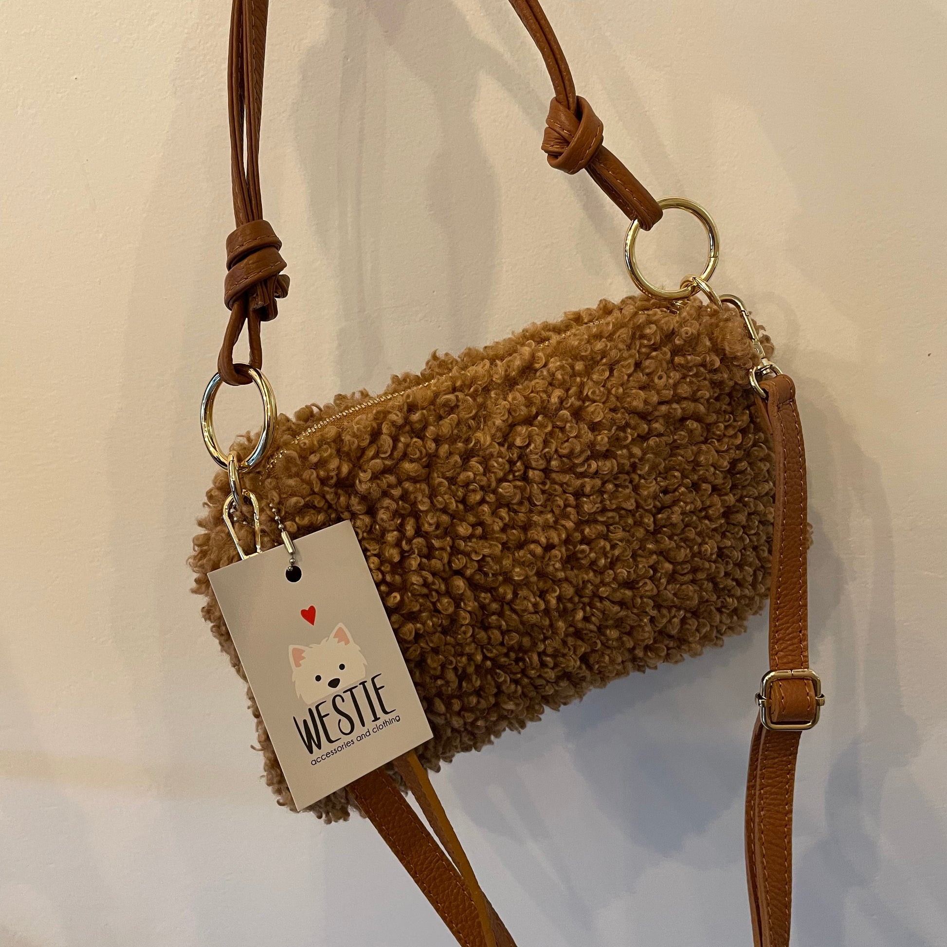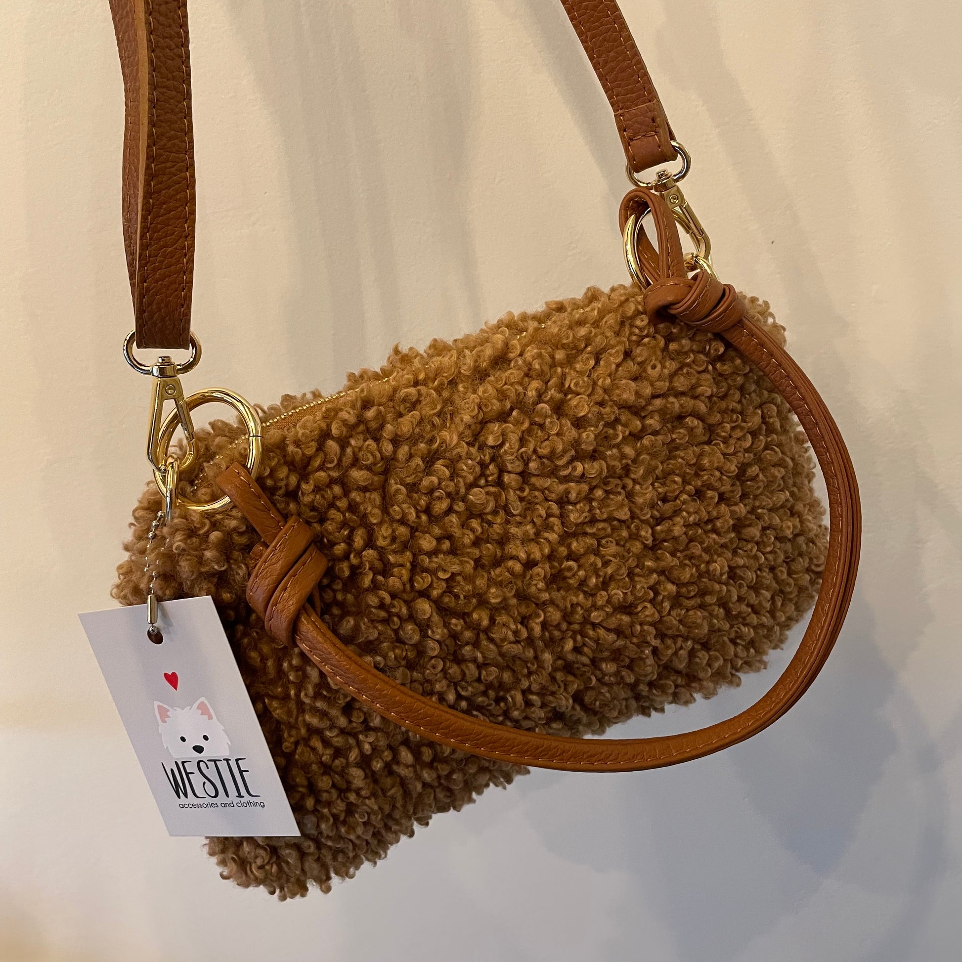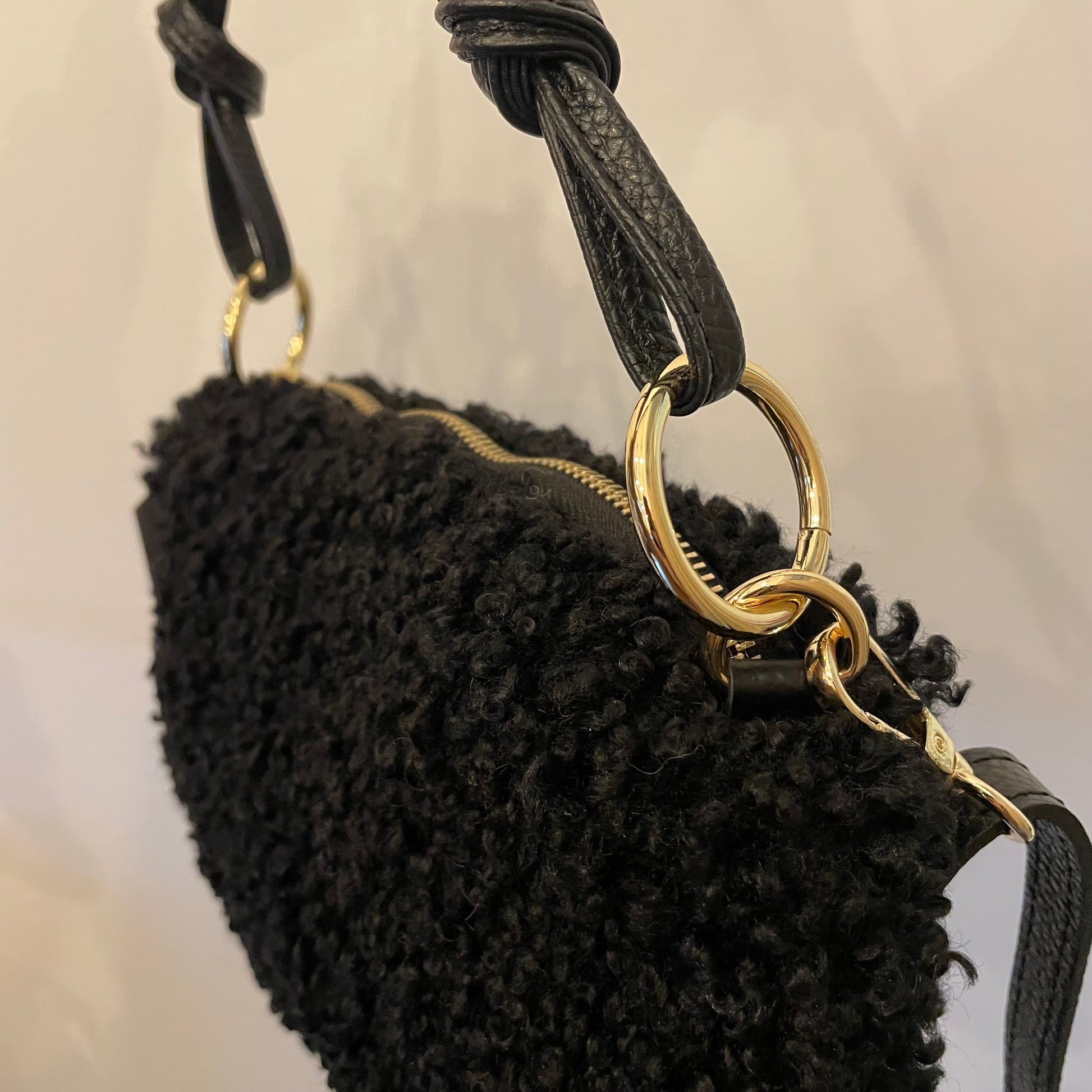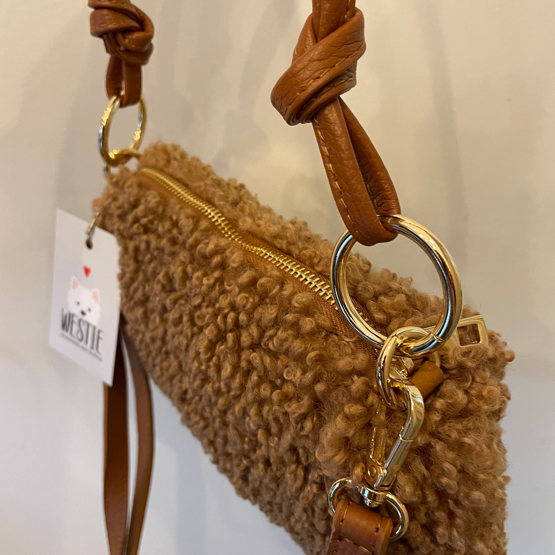 Borsa in teddy made in Italy con manico e tracolla staccabile in vera pelle.