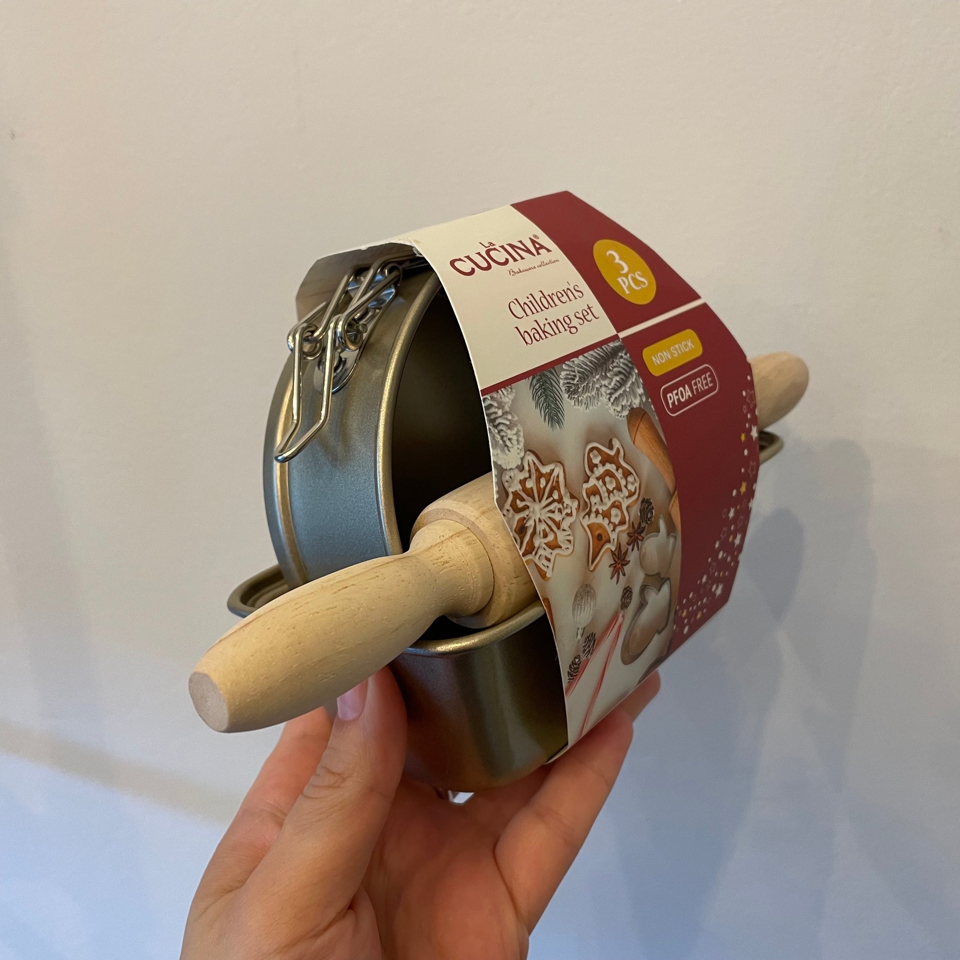 Set per pasticceria a misura di bambino composto da tre pezzi.