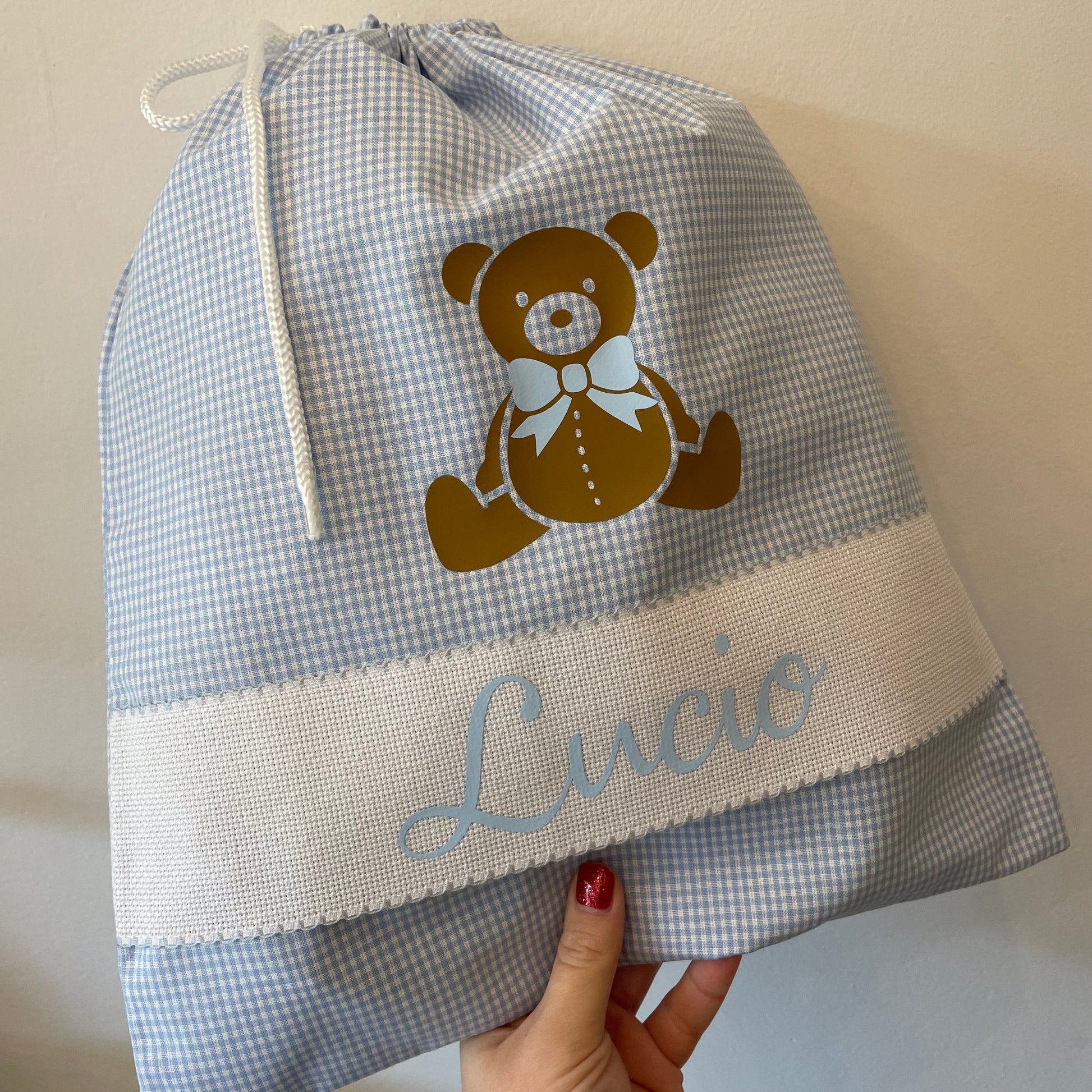 Dimensioni: (40,5x35) cm. 100% cotone sfoderato. La personalizzazione è realizzata in termo-vinile.