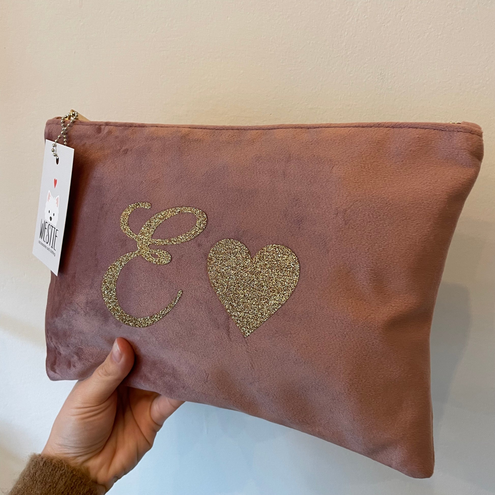 Dimensioni: (30x20) cm. Cerniera in metallo dorato, personalizzazione in termo-vinile.